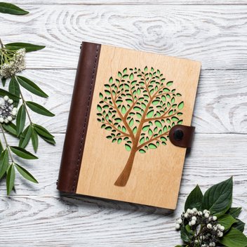 Ежедневник Творческая мастерская "Пуговка" Анастасии Минич А5 кожа Дерево зеленое